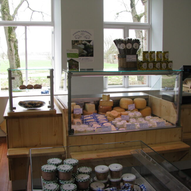 “ Wir, Monika und Redlef Volquardsen, betreiben in Tetenbüll unsere Käserei mit eigenem Hofladen. Wir melken unsere 130 Milchschafe und verarbeiten die Milch nach Bioland Richtlinien zu über 10 Sorten Käse. In der Saison von Februar bis Oktober bieten wir Hofführungen an um Interessierte einen Einblick über das Arbeiten und Leben auf einem Biolandhof näher zu bringen.“